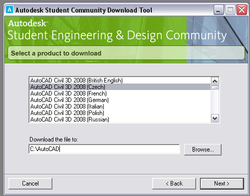 Stahujte buď přímo ze stránek Autodesku zde: