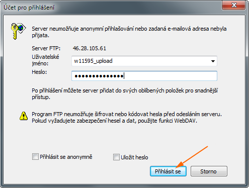 3. Nahrajte na FTP server svůj soubor. Nezapomeňte ho předtím nějak inteligentně pojmenovat, ať v tom není guláš.